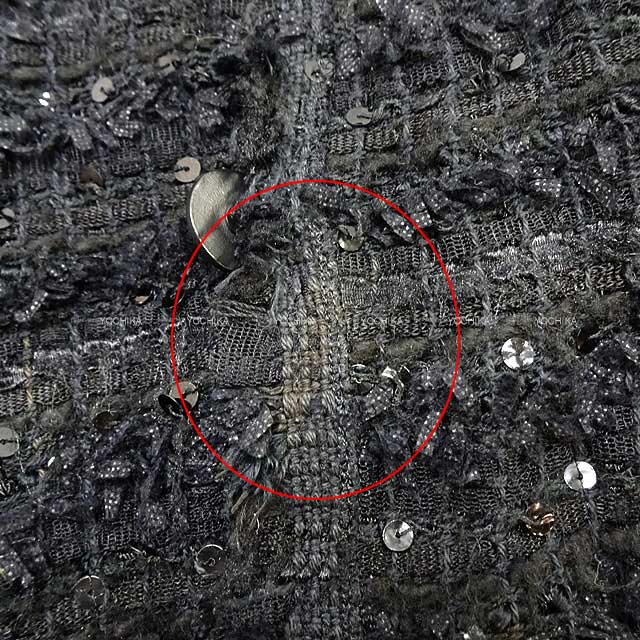 CHANEL シャネル ノーカラー ツイードジャケット スパンコール #36 黒 (ブラック) ビスコース 30%/コットン 20%/ポリアミド 20%/ポリエステル 20%/ミルク 10% P26165V15950 新品同様【中古】