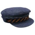| [Pre-loved] HERMES Casquette Julietta #59 Indigo Fine denim/Bicolor leather tress[LIKE NEW][Authentic] |