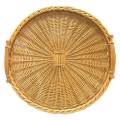 [Pre-loved] HERMES Round Tray Glass Oseraie GM Picnic Naturel Rattan Stamp 〇Q[LIKE NEW][Authentic]
