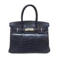 | [Pre-loved] HERMES Handbag Birkin30 Blue Indigo Crocodile Niloticus Mat Silver HW Stamp □E[USED SA][Authentic] |