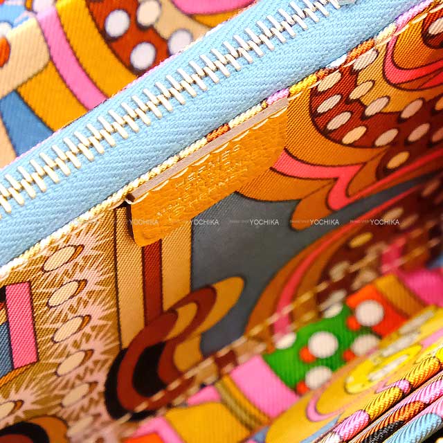 HERMES エルメス 二つ折り財布 アザップシルクイン コンパクト エルメス エレクトリック キャラメル/ニューブルージーン/サン エバーカラー(エヴァーカラー)/バレニア/シルク100% シルバー金具 B刻印 新品