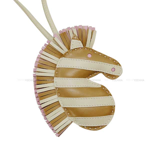 [Pre-loved] HERMES bagcharm Geegee Savannah Zebra Chai/Craie/Mauve Pale Agneau Milo Stamp Z[LIKE NEW][Authentic]