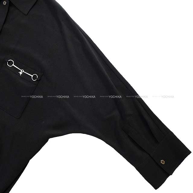 | 2022 HERMES One‐piece dress Shirt Horsebit pocket belt Noir (Black) 36 Silver HW[EXCELLENT][Authentic] |