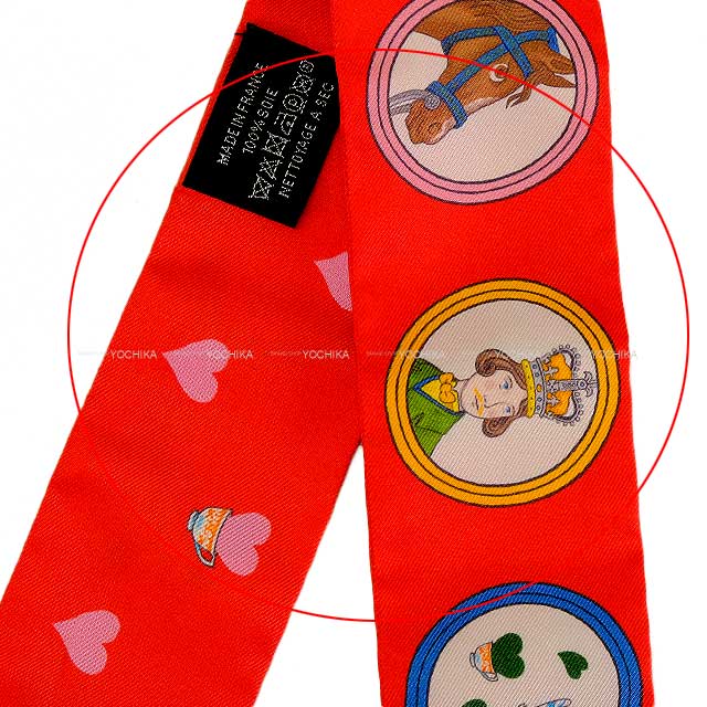 | [Pre-loved] 2021AW HERMES scarf Twilly HERMES TEA TIME Rouge vif/Vert/Multicolor Silk100%[LIKE NEW][Authentic] |
