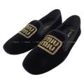 | MIUMIU ミュウミュウ スリッパ ロゴ ベルベット フラットシューズ #37.5 黒 (ブラック)/ゴールド ベロア 5S090E 新品未使用 |