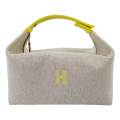 | [Pre-loved] HERMES Pouch Bride a Brac GM Zigzag Jaune Citron Toile H Plume canvas Silver HW[LIKE NEW][Authentic] |