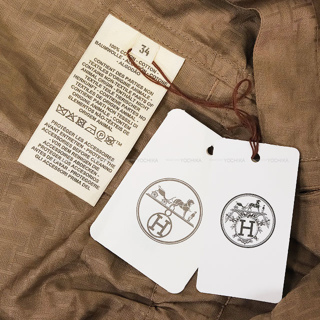 【渋谷並木橋店】2025年春夏 新作 HERMES エルメス サロペット コンビ ショートパンツ オールインワン Hモザイク エトープ (エトゥープ) コットン100% #34 シルバー金具 新品
