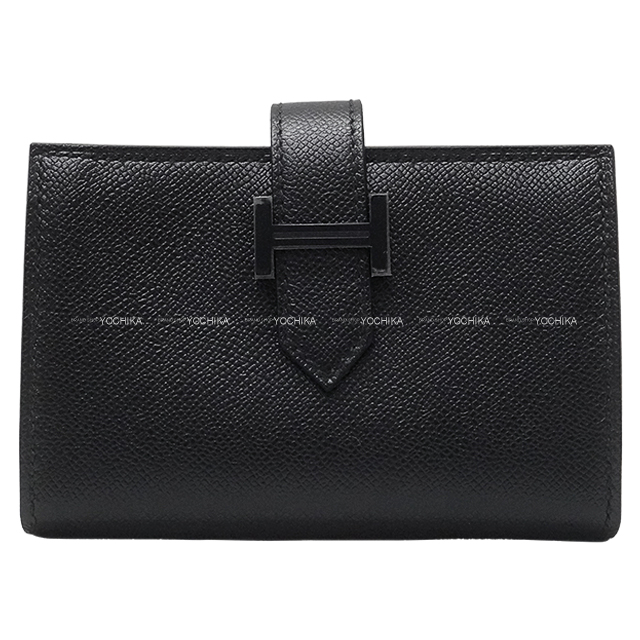 | HERMES エルメス 二つ折り財布 ベアン ミニ コインケース付き 名刺 カードケース ソーブラック モノクローム 黒 (ブラック) ヴォーマダム ブラック金具 W刻印 新品 |