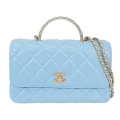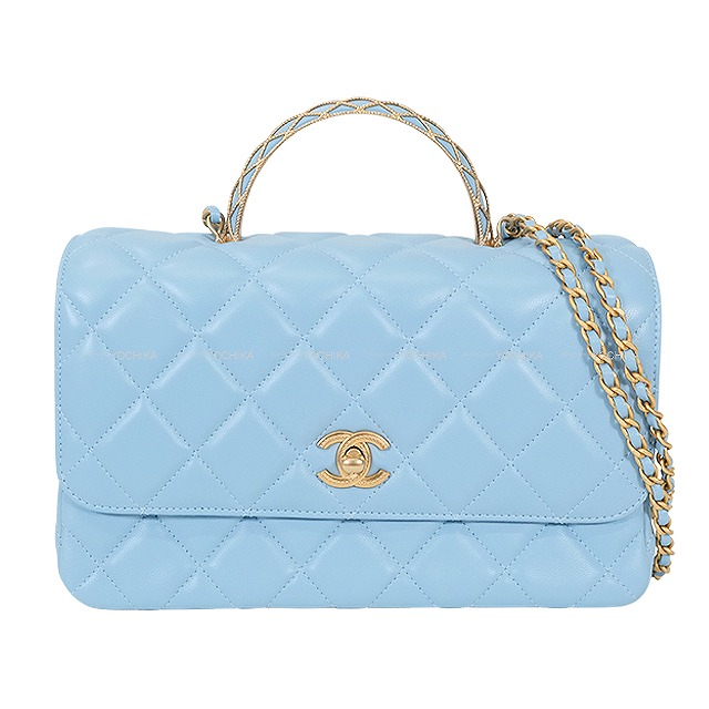 | 2023年秋冬 CHANEL シャネル ハンドバッグ マトラッセ チェーン トップハンドル XS 24 ライトブルー ラムスキン ゴールド金具 新品同様【中古】 |