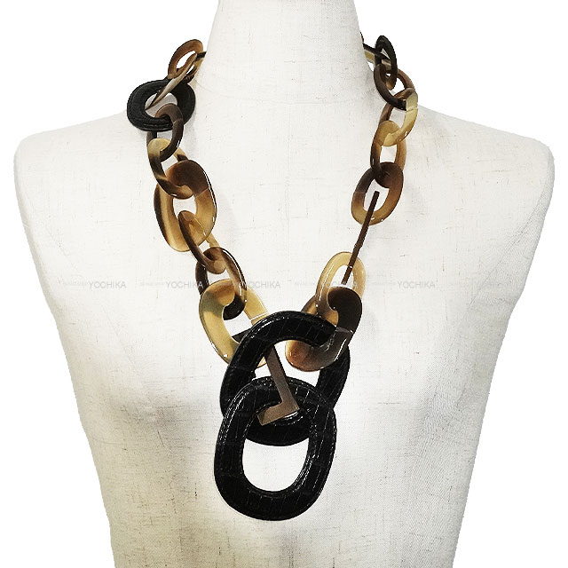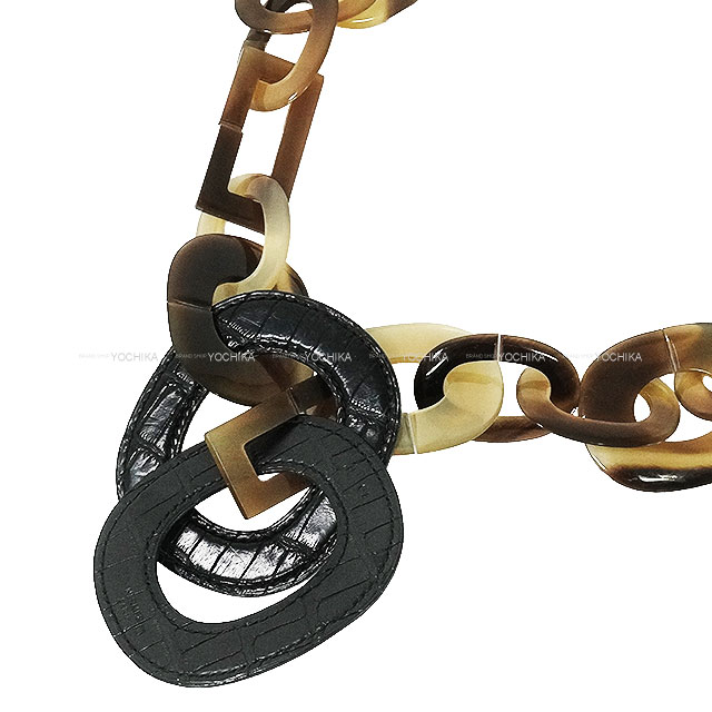 | HERMES エルメス ネックレス ダンカン 黒 (ブラック)/ブラウン クロコダイル アリゲーターマット/バッファローホーン □L刻印 Aランク【中古】 |