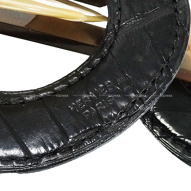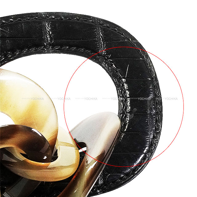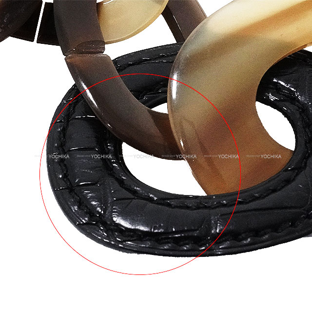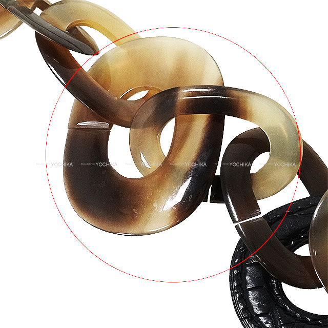 | [Pre-loved] HERMES necklace DUN CAN Noir (Black)/Brown Crocodile Alligator Mat/Buffalo Horn Stamp □L[USED A][Authentic] |