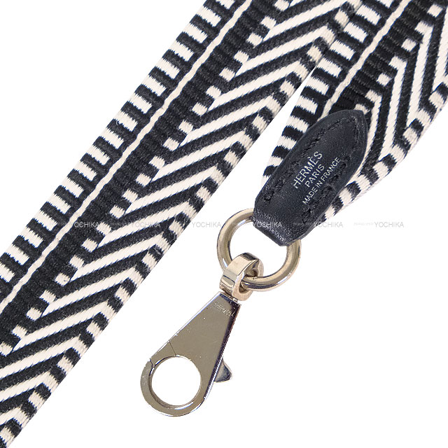 | [Pre-loved] HERMES Handbag Bandouliere 25mm 105cm Sangle Cavale Noir (Black)/Blanc (White) Toile/Swift Silver HW Stamp C[USED SA][Authentic] |