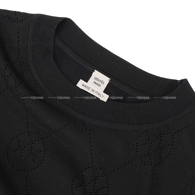 | [Pre-loved] 2022SS HERMES Knit H-Lift Summer Knit Short Sleeve Noir (Black) Cotton/Viscose 2E2622DA[LIKE NEW][Authentic] |