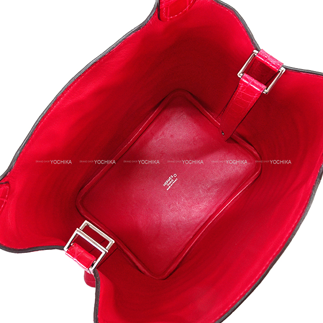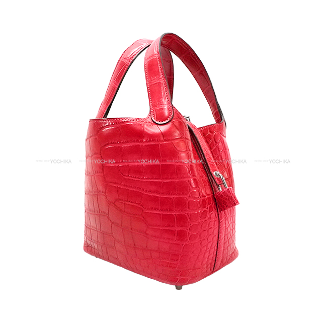 HERMES エルメス ハンドバッグ ピコタンロック 18 PM ローズメキシコ クロコダイル アリゲーターマット シルバー金具 Z刻印 新品同様【中古】