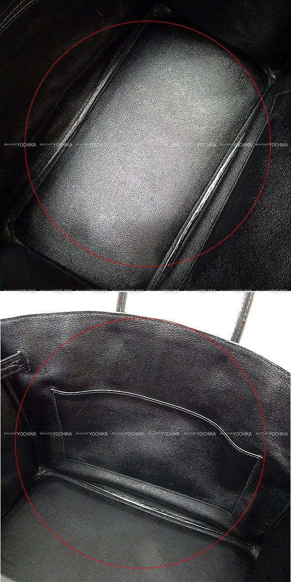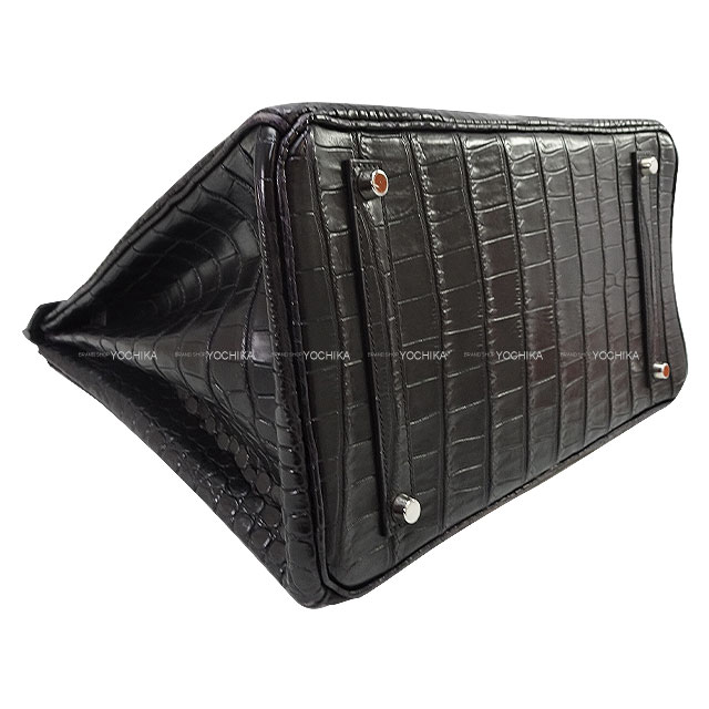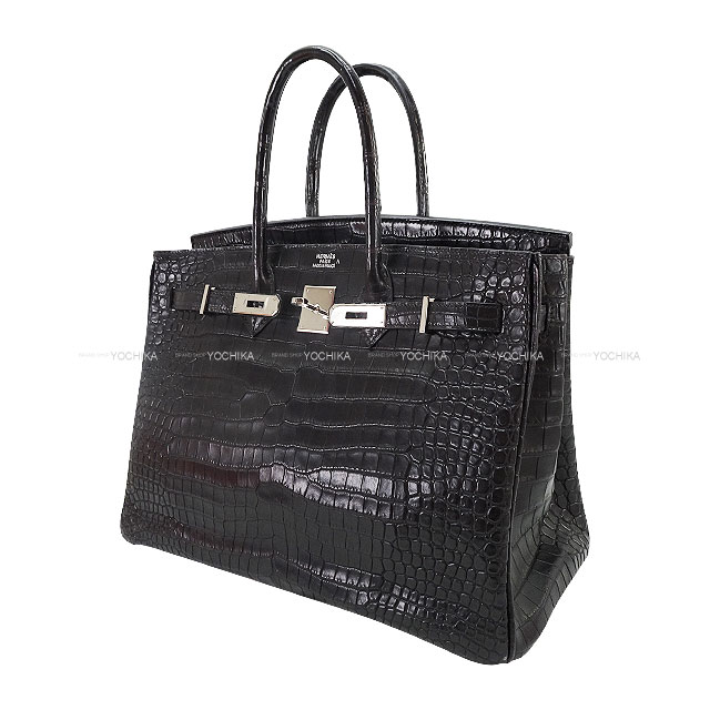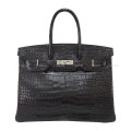 | [Pre-loved] HERMES Handbag Birkin35 Noir (Black) Crocodile Porosus Mat Silver HW Stamp □H[USED AB][Authentic] |