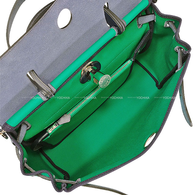 | HERMES Shoulder bag HerBag Zip 31 PM Retourne Menthe (Mint)/Blue Indigo Toile officier/Vache Hunter Silver HW Stamp W[EXCELLENT][Authentic] |