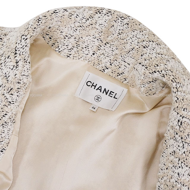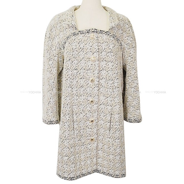 | CHANEL シャネル ステンカラーコート ロングジャケット 七分袖 ココマークボタン ツイード アイボリー アクリル/ウール ゴールド金具 P54620 新品 |