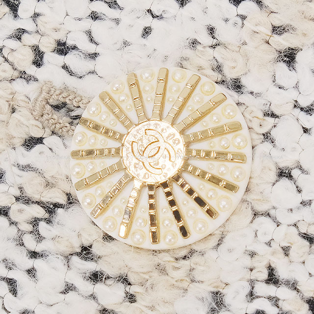 | The long jacket with the here mark button which wore elegance only in CHANEL. I adopt the material which blended wool with acrylic to the tweed of the soft ivory color and have light comfort and moderate thickness. A three-quarter sleeve design gives a classical and light impression and directs refined wearing regardless of a season. The here mark button of gold metal fittings is gorgeous; accentuate, and is the first place that raises the clothing just to put. At this opportunity by all means. |