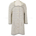 | CHANEL Stainless collar coat Long Jacket 3/4 Sleeve COCO Mark Button Tweed Ivory Acrylic/Wool Gold HW P54620[BRAND NEW][Authentic] |