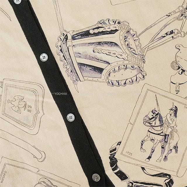 [Pre-loved] HERMES Knit Vintage Short Sleeve CAVALERIA FRANCAISE Marine/Beige Linen[LIKE NEW][Authentic]