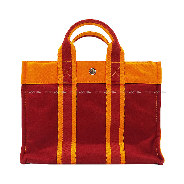 2002年限定 HERMES エルメス トートバッグ フールトゥ PM ハワイ フレンチフェスティバル限定 ルージュアッシュ/オレンジ コットンキャンバス シルバー金具 新品同様【中古】