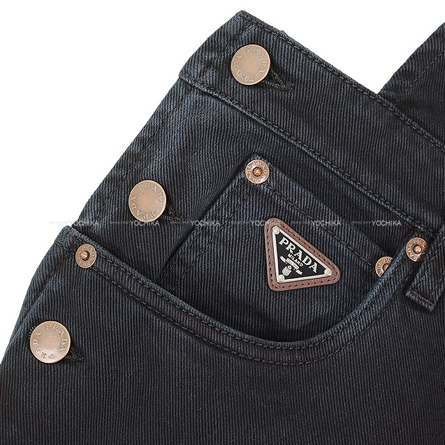 | From PRADA, a denim overall has arrived! Overalls have a casual image, but these are black, so they create a casual yet mature and cool style! The waist features a triangular logo plate, Prada's iconic design. This subtle statement gives a more sophisticated impression. If you like casual outfits, this is your chance! |