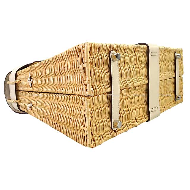 | The Kelly Picnic 35, a fusion of rattan and swift leather, embodies Herms' playful spirit and masterful craftsmanship. The Nata (creamy white) leather complements the natural warmth of the rattan, achieving both elegance and lightness. While possessing the approachable charm of a basket bag, its form is unmistakably the Kelly itself. It makes a stunning statement not only for picnics and resort settings but also as an accent to city style. The highly sought-after large size “35” is a valuable piece worthy of being considered an art object. Each time you hold it, you feel the breath of Maison Herms' craftsmanship in this special bag. |