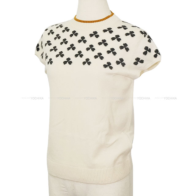 HERMES エルメス ニット 半袖ニット クローバー アイボリー/黒/ブラウン カシミヤ100% #34 新品同様【中古】