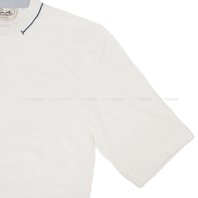 2025年春夏 HERMES エルメス ニット メンズ 半袖 プルコル ロンド Hータック 白 (ホワイト) コットン H557250HA 新品未使用