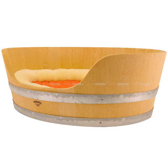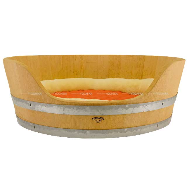 | HERMES エルメス インテリア 犬用 バスケット MM ペットベッド&クッション ナチュラル/フーオレンジ オーク材/ムートン/ステンレススチール H800457E 02 SAランク【中古】 |
