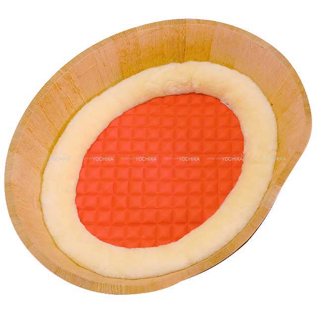 | [Pre-loved] HERMES Interior Bucket basket MM Pets bed & cushion Naturel/Feu Orange Oak wood/Mouton/Stainless steel H800457E 02[USED SA][Authentic] |