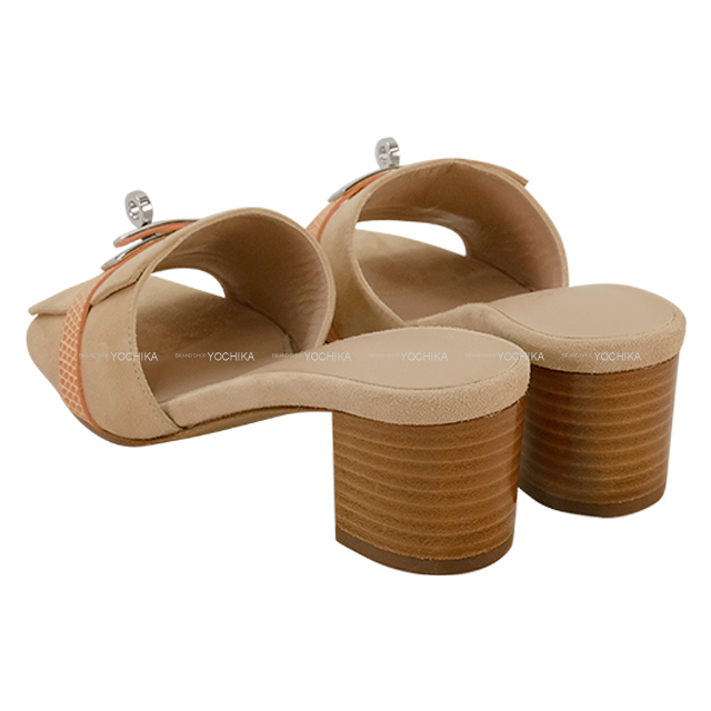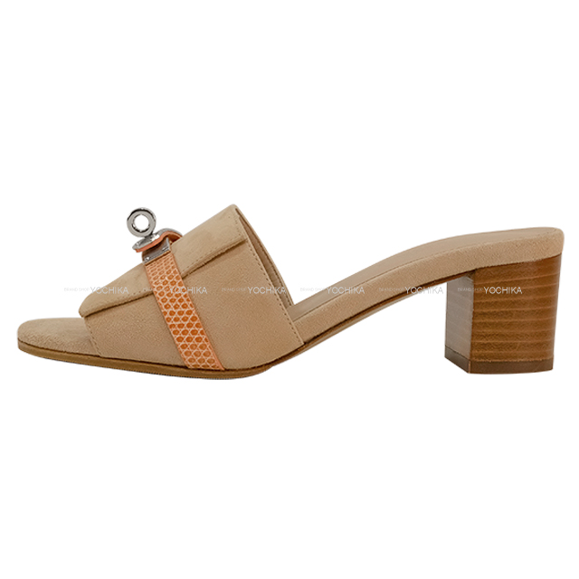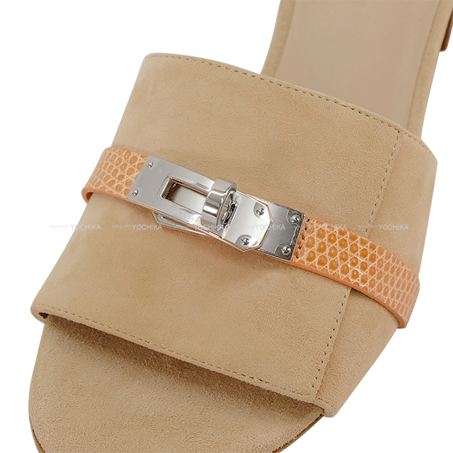 HERMES sandals Gigi 50 Beige/Orange Suede/Lizard ♯35.5 Silver HW[EXCELLENT][Authentic]