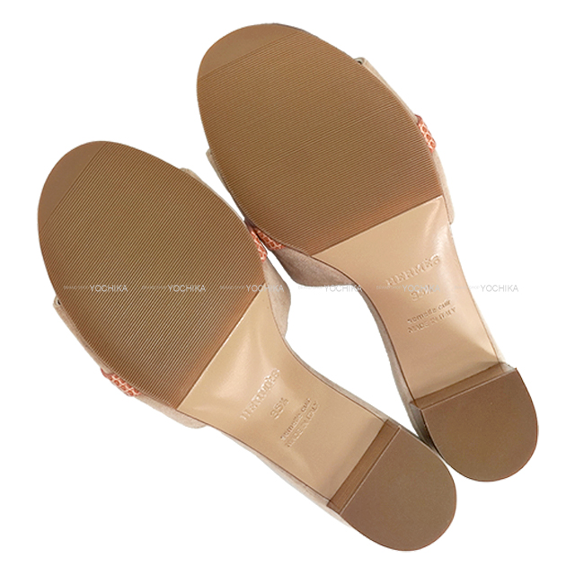 HERMES エルメス サンダル ジジ 50 ベージュ/オレンジ スエード/リザード ♯35.5 シルバー金具 新品未使用