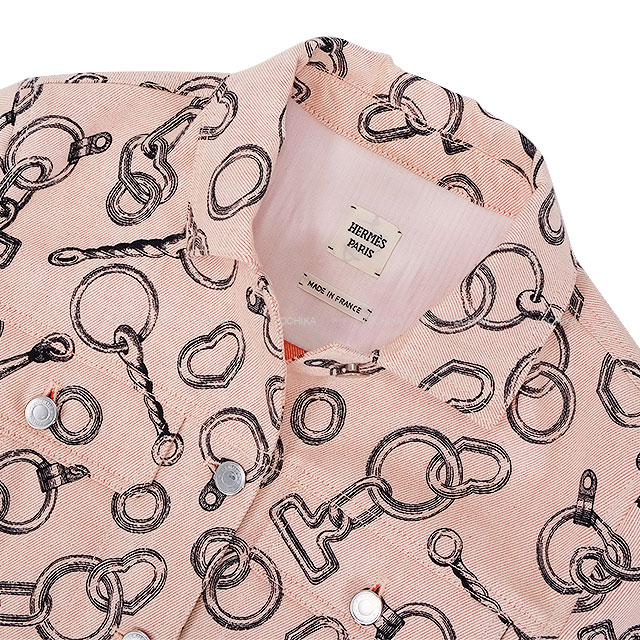 | HERMES エルメス デニムジャケット カレイドスコープ エフェクト ピンク コットン100% シルバー金具 4H0253DD 新品 |