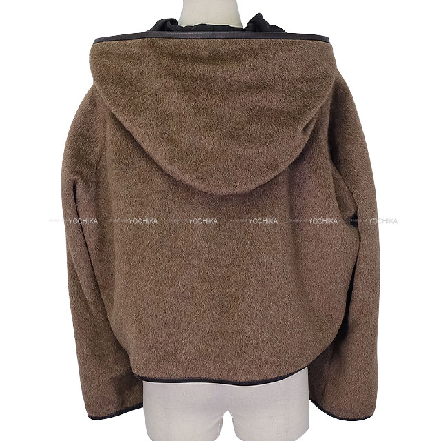 2024年 秋冬 HERMES エルメス ステンカラーコート フーディ ベルト付 ブラウン アルパカ/ラムスキン #38 4H0198DE 新品同様【中古】