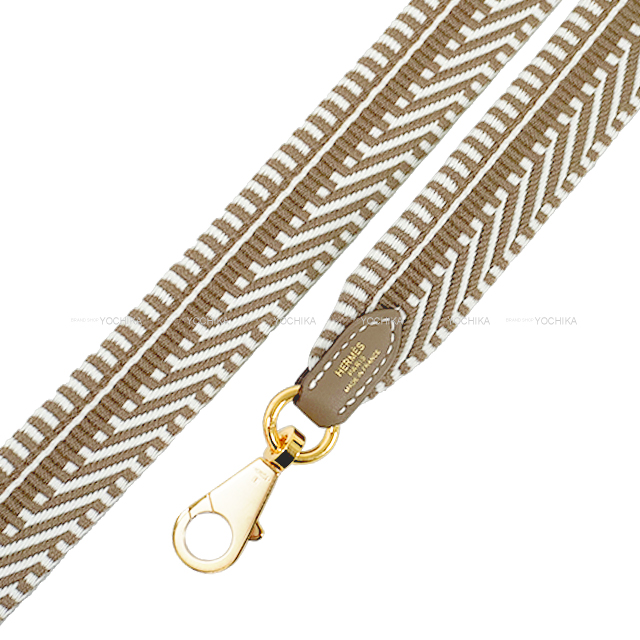 | HERMES shoulder strap Bandouliere 25mm 85cm Sangles Caval Etoupe/Blanc (White) Toile H/Veau Swift Gold HW Stamp K[BRAND NEW][Authentic] |