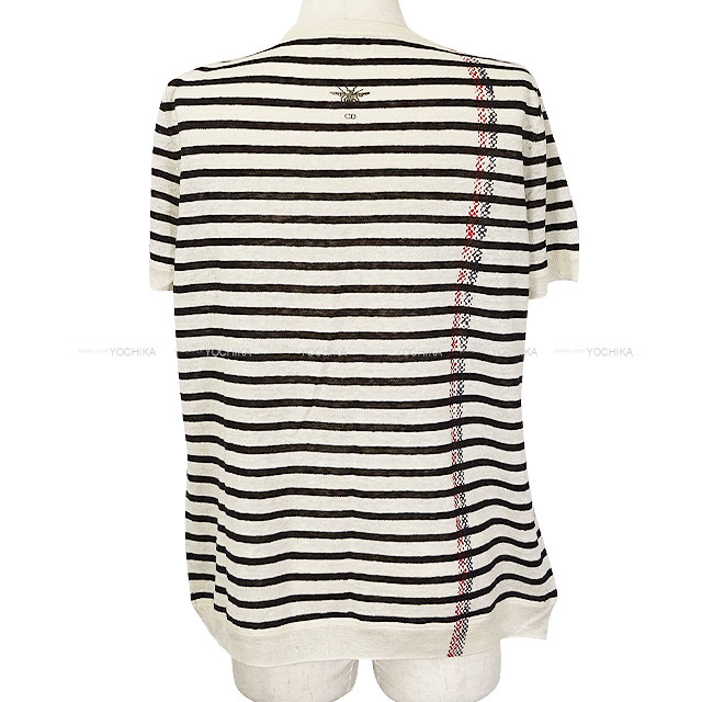 【渋谷並木橋店】2022年秋冬 Dior ディオール ニット 半袖 ボーダー L'Union Fait LA Force 白(ホワイト)/黒(ブラック) カシミヤ/麻(リネン)/シルク #36 244S28AM734 新品同様【中古】