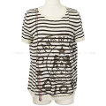 [Pre-loved] 2022AW Dior Knit Short Sleeve Stripe L'Union Fait LA Force White/Black Cashmere/Linen/Silk 244S28AM734[LIKE NEW][Authentic]