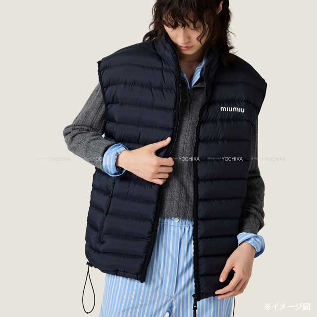【渋谷並木橋店】Miu Miu ミュウミュウ ダウンベスト ライト ポンジ ネイビー グースダウンパッティング 44 ML1345 新品
