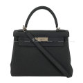| HERMES Shoulder bag Kelly28 Retourne Noir (Black) Veau Togo Silver HW Stamp W[EXCELLENT][Authentic] |
