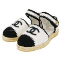 | CHANEL sandals Coco Mark Espadrille Blanc (White)/Noir (Black) Fabric #38 Champagne Gold HW G38736[EXCELLENT][Authentic] |