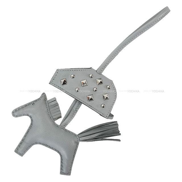 | Herms bag charm Rodeo Robeo Rock Studs PM has arrived. The saddle adorned with sparkling silver studs is removable, allowing you to swap it onto your favorite bag charm body or freely customize it to suit your mood. The color is “Gris Pantin,” introduced for Spring/Summer 2025. The matte, soft gray coloring paired with silver studs creates a very cool & rock vibe! Playful and full of fun, the Rodeo is highly popular among Herms enthusiasts. It also makes a great gift. |
