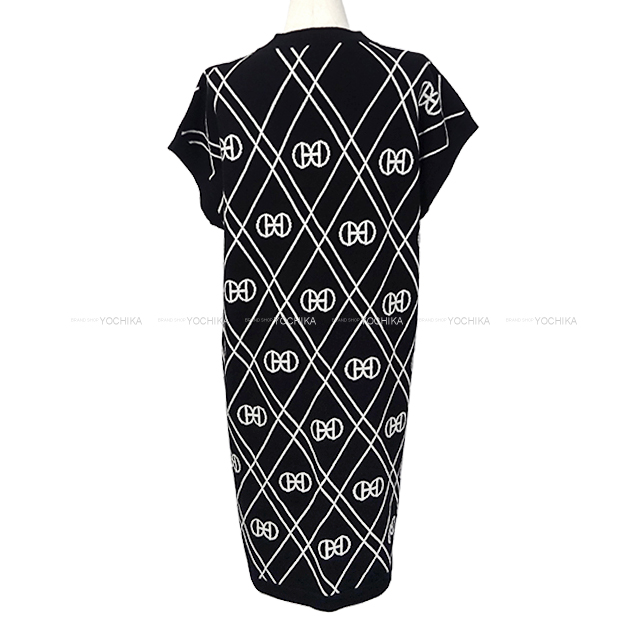 | HERMES エルメス ワンピース 半袖 ニット Hロンド 黒 (ブラック)/白 (ホワイト) カシミヤ100% 新品未使用 |