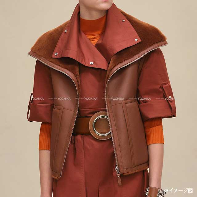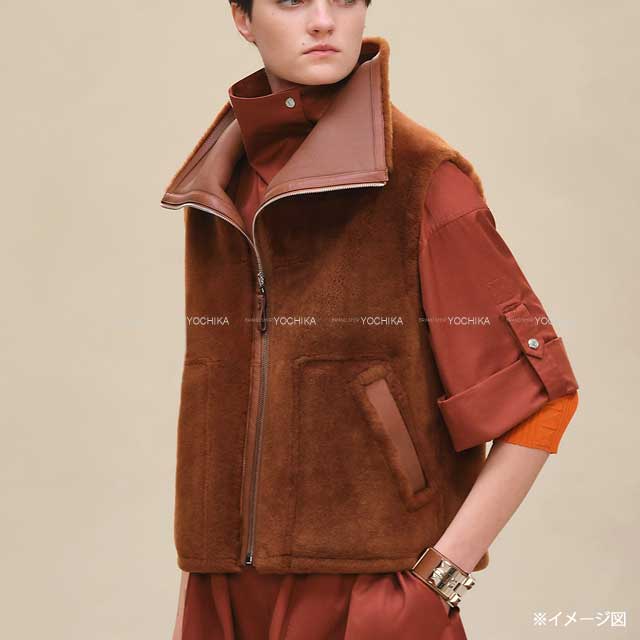 | 2025年秋冬 HERMES エルメス ベスト リバーシブル ノースリーブ ファー ジャケット マロンフォーヴ シープスキン/ムートン シルバー金具 5H1229D5 新品未使用 |