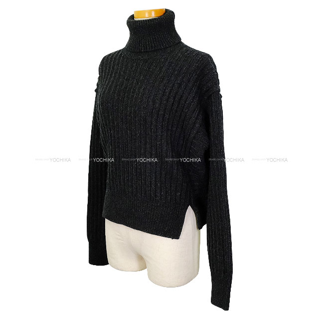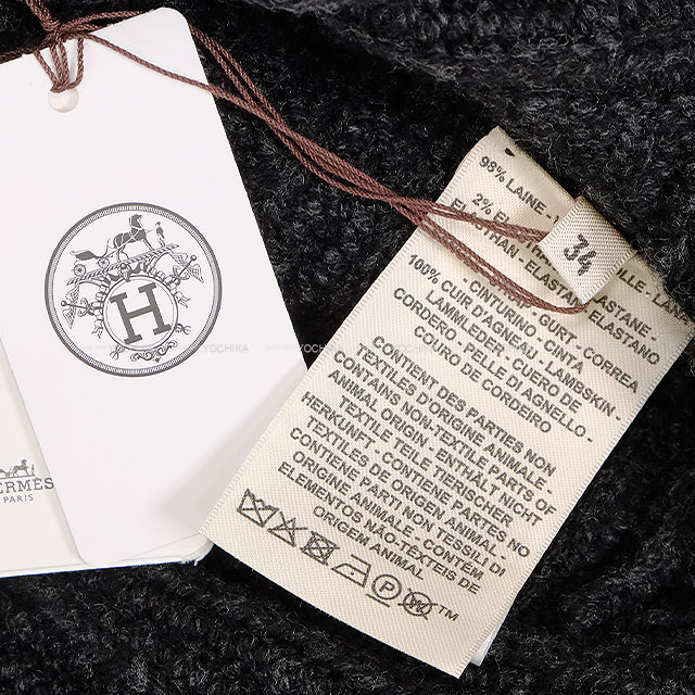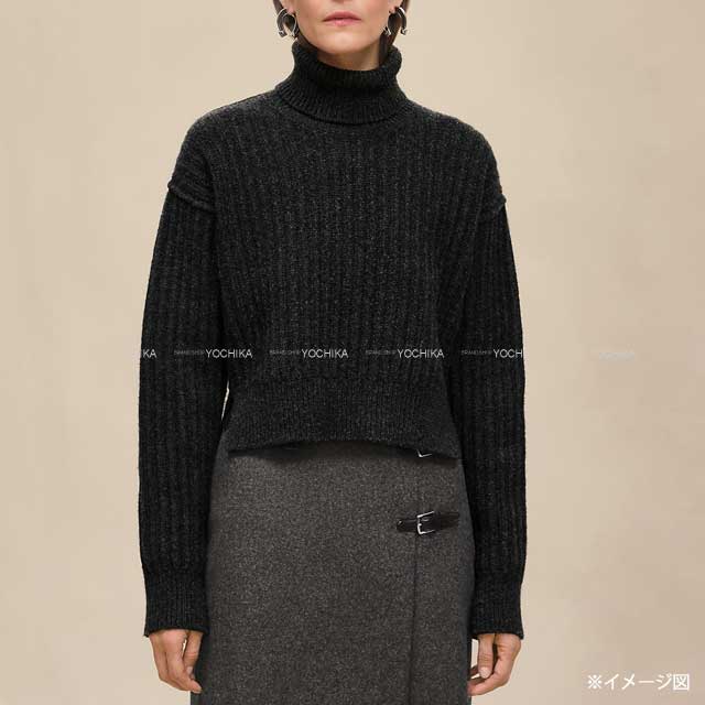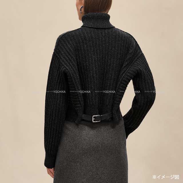 | 2025年 秋冬 HERMES エルメス ニット ロングスリーブ セーター タートル クロップド バックベルト付 グリ ヴォルカニック ウール/羊革 H5H2627DAFV 新品 |