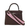 HERMES Shoulder bag Kelly25 Retourne with Bandouliere Rouge Sellier/Rose Confetti Veau Togo Silver HW Stamp K[EXCELLENT][Authentic]