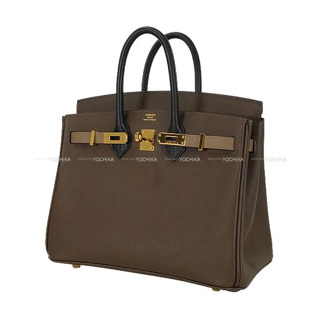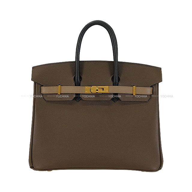 | [Pre-loved] HERMES Handbag Birkin25 Retourne Tricolor Ecorce/Noir (Black)/Etoupe Veau Epsom Gold HW Stamp W[LIKE NEW][Authentic] |