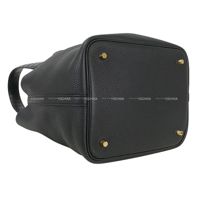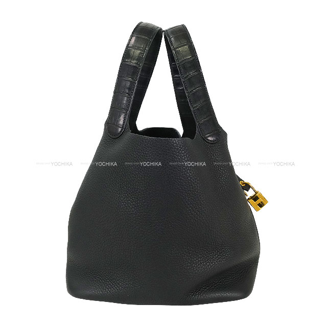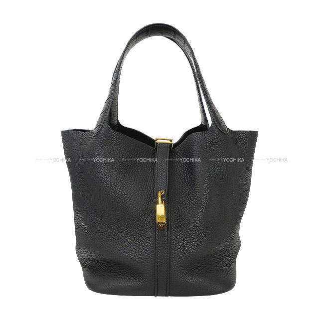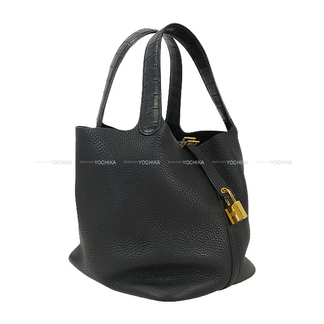 | [Pre-loved] HERMES Handbag Picotin Lock 22 MM Touch Noir (Black) Taurillon Clemence/Crocodile Alligator Mat Gold HW Stamp U[USED SA][Authentic] |