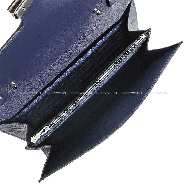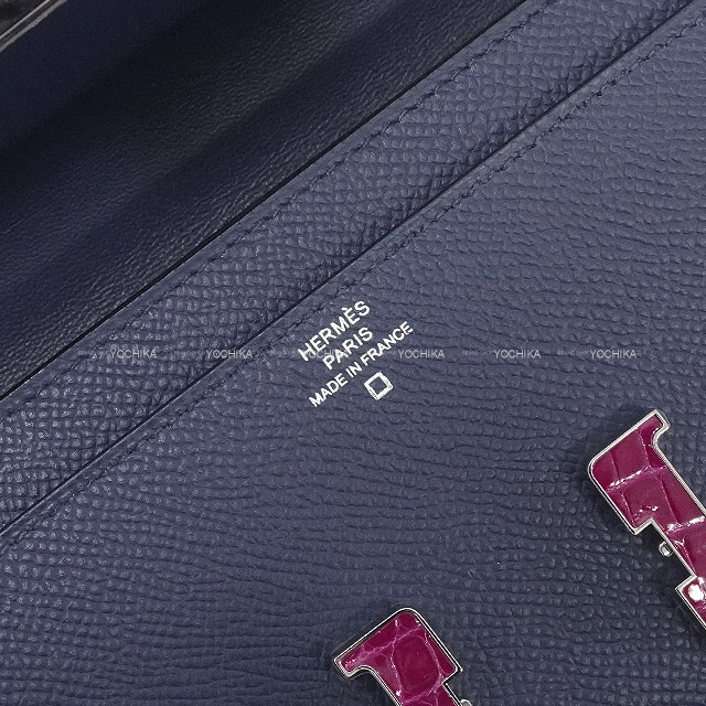| HERMES long wallet Constance Long wallet To Go Bleu Nuit/Rose Purple Veau Epsom/Crocodile Alligator Lisse Silver HW Stamp K[BRAND NEW][Authentic] |