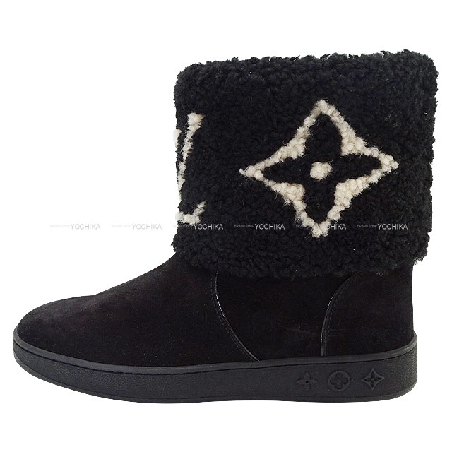 | [Pre-loved] LOUIS VUITTON boots Ankle boots Snowdrop Line Noir (Black) Suede cal #37[LIKE NEW][Authentic] |